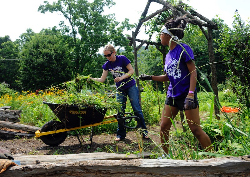 Growing knowledge: Sylva Community Garden volunteer Jennifer Cooper says a community garden is a place where people from many walks of life can grow and learn together. "Not everyone who is coming into the garden has the same amount of experience," Cooper says. "But we have experienced gardeners here -- volunteering their time -- who are able to teach them. It's really cool to see people sharing knowledge." (Photo by Ashley Evans, courtesy of WCU)