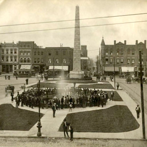 One of the photos shows what appears to be an organized gathering of men in Pack Square, for a purpose unknown. Like many in the collection, it appears to be the work of a professional photographer seeking to showcase the town. Courtesy North Carolina Collection, Pack Memorial Library