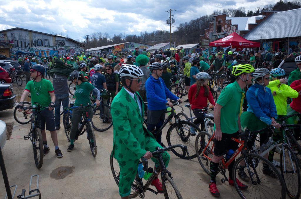 Bike of the Irish is AoB’s annual spring ride, featuring hundreds of green-bedecked riders and routes that showcase the best of Asheville’s bike infrastructure and greenways. All of AoB’s community rides are family friendly and free (although donations are appreciated).