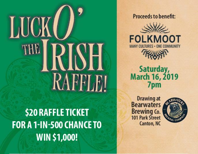 Do you have the luck of the Irish? Call Folkmoot, 828-452-2997 to learn more or purchase your Luck O’ the Irish ticket through the link below. Paper tickets can be mailed or picked up at the Friendship Center in Waynesville.