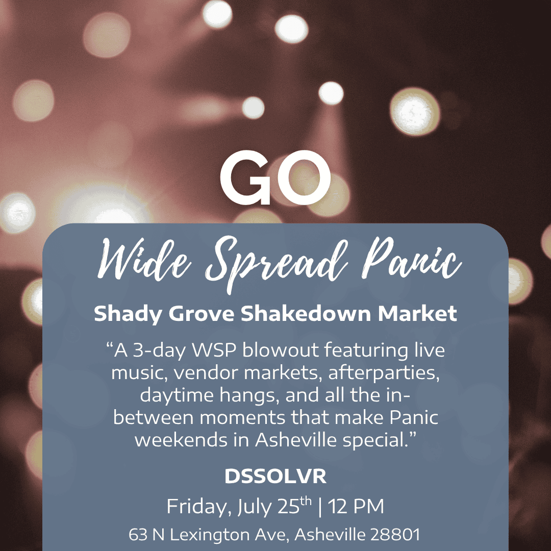 “A 3-day WSP blowout featuring live music, vendor markets, afterparties, daytime hangs, and all the in-between moments that make Panic weekends in Asheville special.”