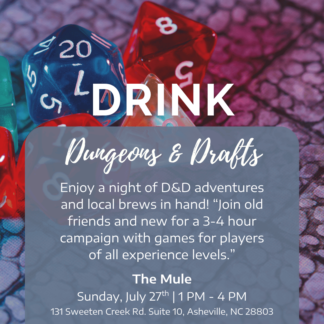 Enjoy a night of D&D adventures and local brews in hand! “Join old friends and new for a 3-4 hour campaign with games for players of all experience levels.”
