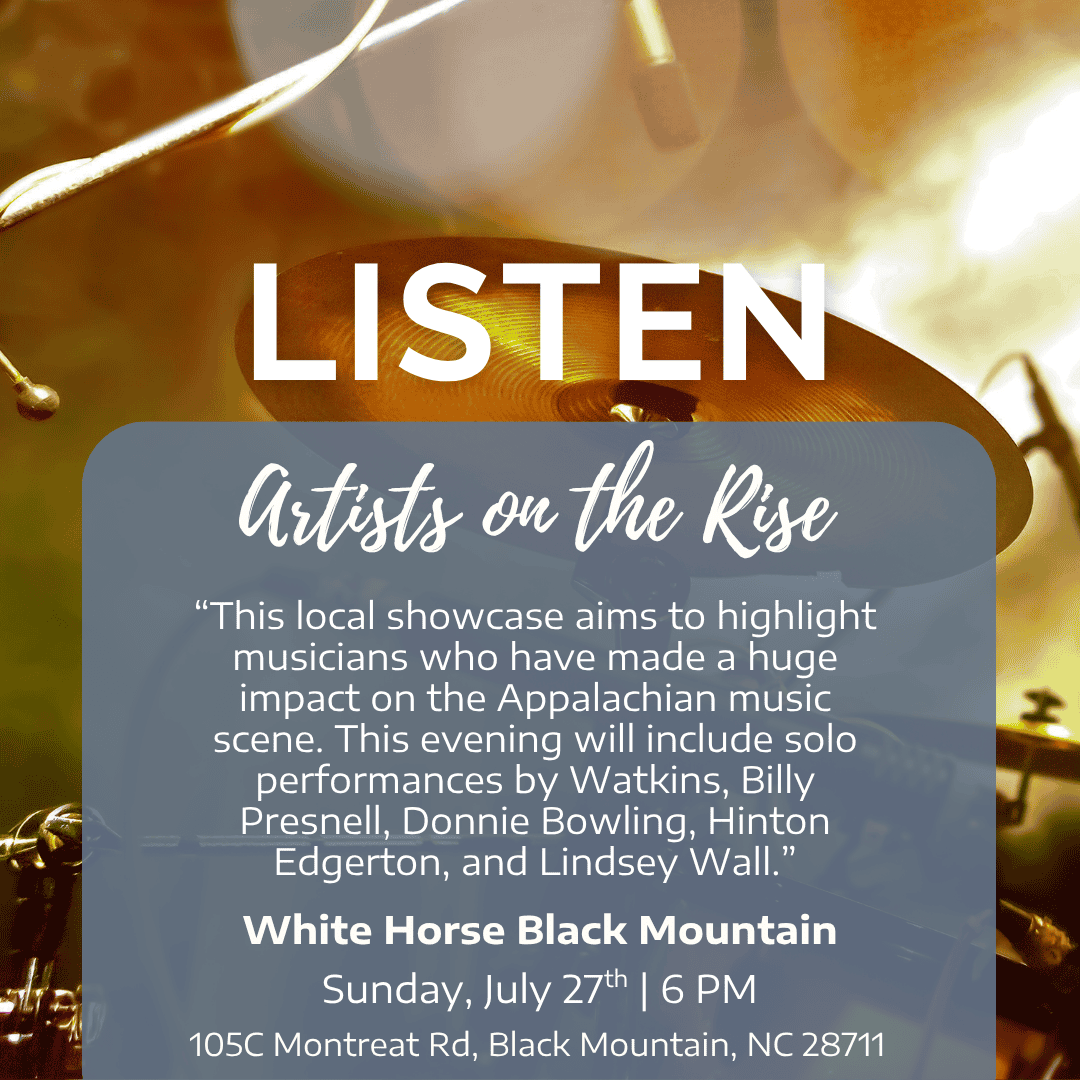 “This local showcase aims to highlight musicians who have made a huge impact on the Appalachian music scene. This evening will include solo performances by Watkins, Billy Presnell, Donnie Bowling, Hinton Edgerton, and Lindsey Wall.”
