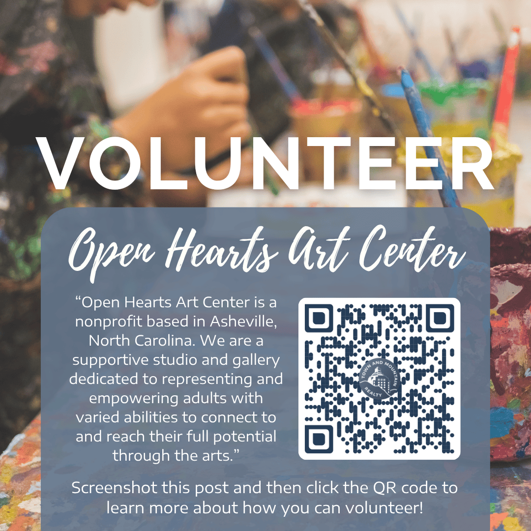 “Open Hearts Art Center is a nonprofit based in Asheville, North Carolina. We are a supportive studio and gallery dedicated to representing and empowering adults with varied abilities to connect to and reach their full potential through the arts.”