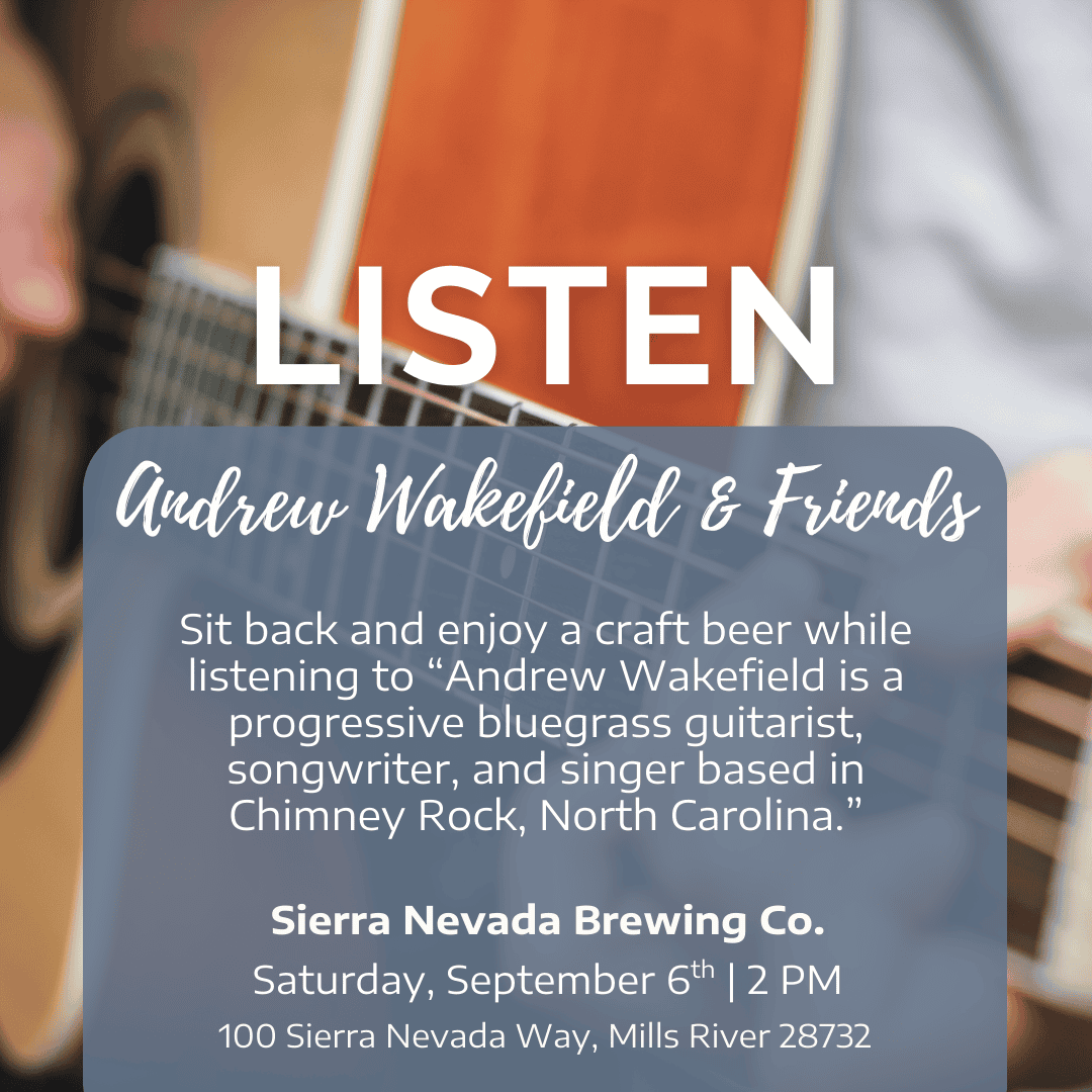 Sit back and enjoy a craft beer while listening to “Andrew Wakefield is a progressive bluegrass guitarist, songwriter, and singer based in Chimney Rock, North Carolina."