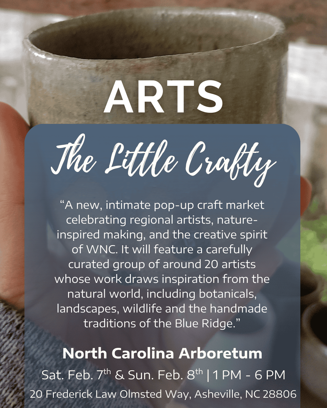 “A new, intimate pop-up craft market celebrating regional artists, nature-inspired making, and the creative spirit of WNC. It will feature a carefully curated group of around 20 artists whose work draws inspiration from the natural world, including botanicals, landscapes, wildlife and the handmade traditions of the Blue Ridge.”