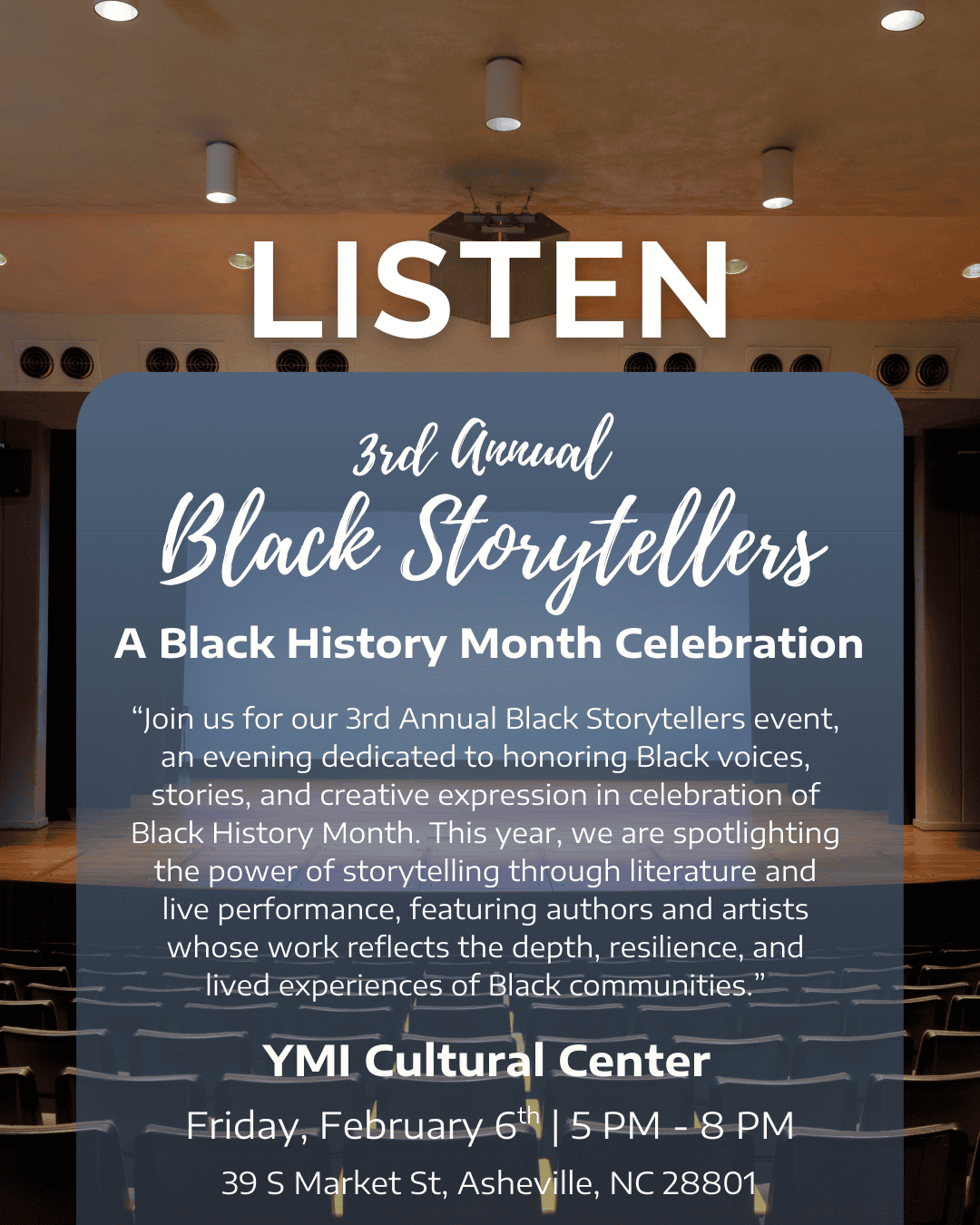 “Join us for our 3rd Annual Black Storytellers event, an evening dedicated to honoring Black voices, stories, and creative expression in celebration of Black History Month. This year, we are spotlighting the power of storytelling through literature and live performance, featuring authors and artists whose work reflects the depth, resilience, and lived experiences of Black communities.”